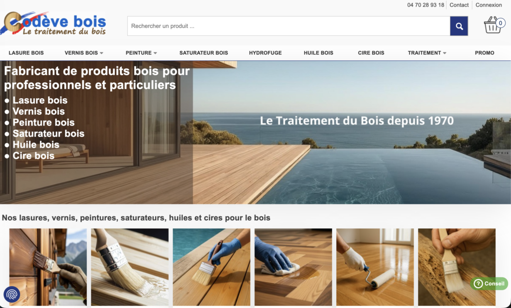 Codeve.fr est le site d’un fabricant français de produits de protection et de traitement du bois, conçu pour aider les professionnels et les particuliers à entretenir durablement leurs surfaces bois.